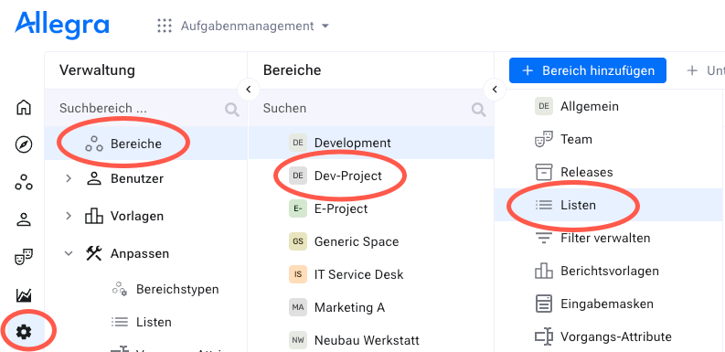 In Allegra, you can configure any number of custom option lists. You can make these lists available for all workspaces or only for a specific workspace. Items, which include a custom selection list as an attribute, have one of the pre-configured values of the lists you define. For example, you could have lists with operating systems, drawing numbers, serial numbers, or clients. You could have a list with system components or simply mark items with the location where you need to take care of them.