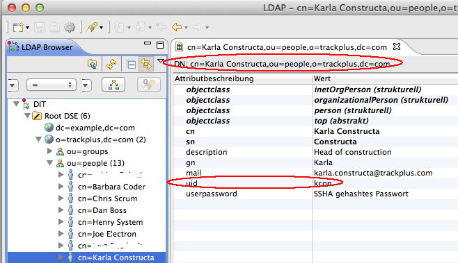 The required entries can be easily determined if you use a browser for the LDAP server such as Apache Directory Studio.