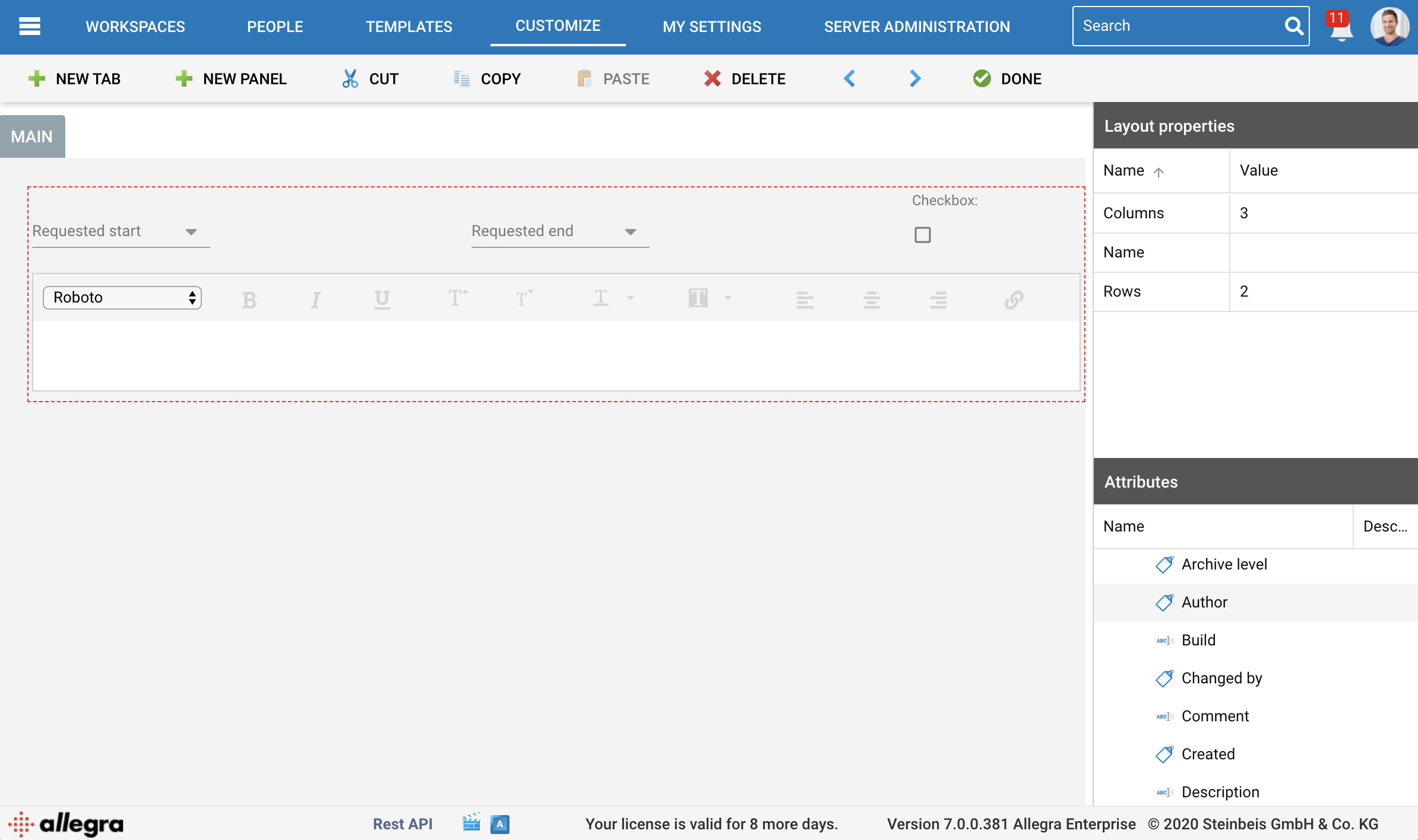 You can freely define your forms. Currently, the following field types are supported in Allegra SD. Any attribute you define that does not belong to the following types will not be displayed. We are constantly working on providing more field types.