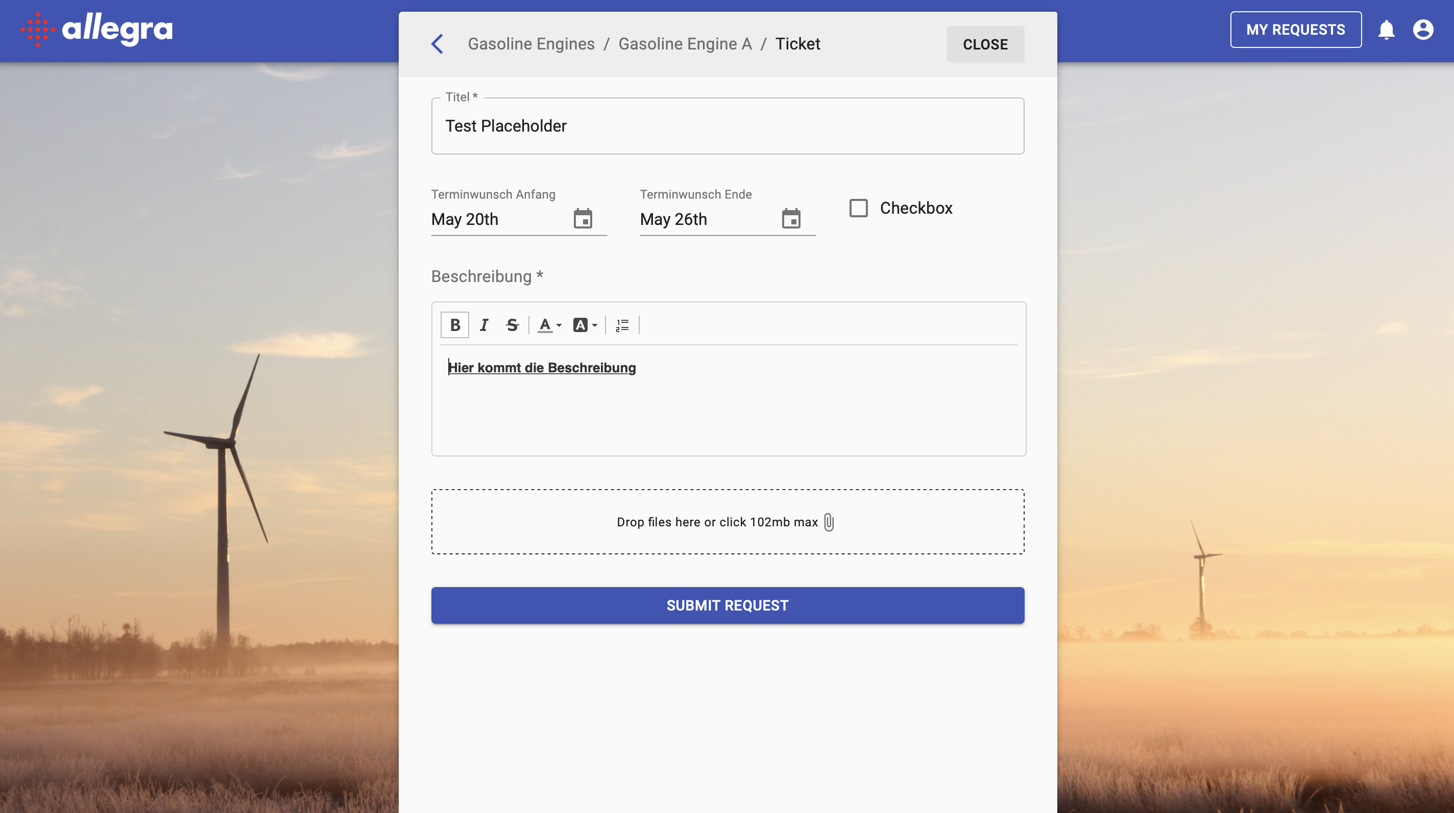 Create a new workspace with a Helpdesk type of workspace. These are the workspaces that you make accessible to the Allegra SD. You can edit the description, icon and name, they will be displayed in Allegra SD. If there is no workspace type of the Helpdesk type, create one.