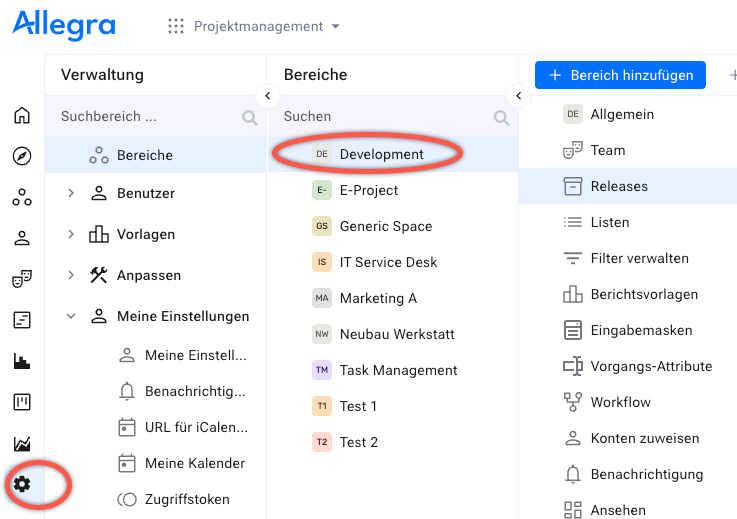 • Switch to Administration > Workspaces