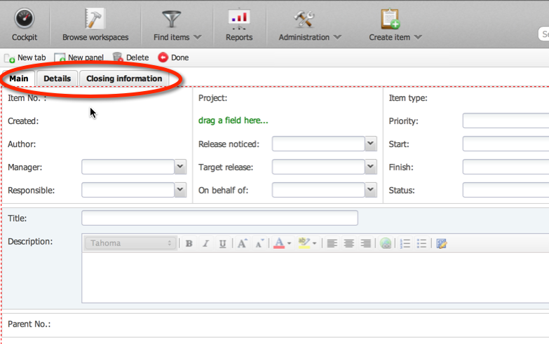 In Allegra, you can define any number of input forms used for creating items, editing items, changing the item status, adding comments to items, and moving items to other projects or item types.