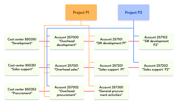 An account belongs to exactly one cost center. With the help of cost centers, you can group accounts.